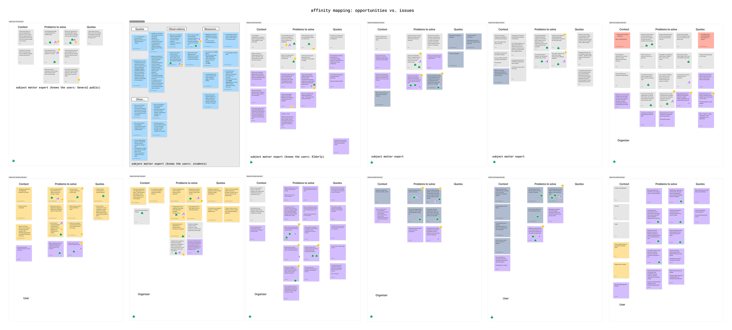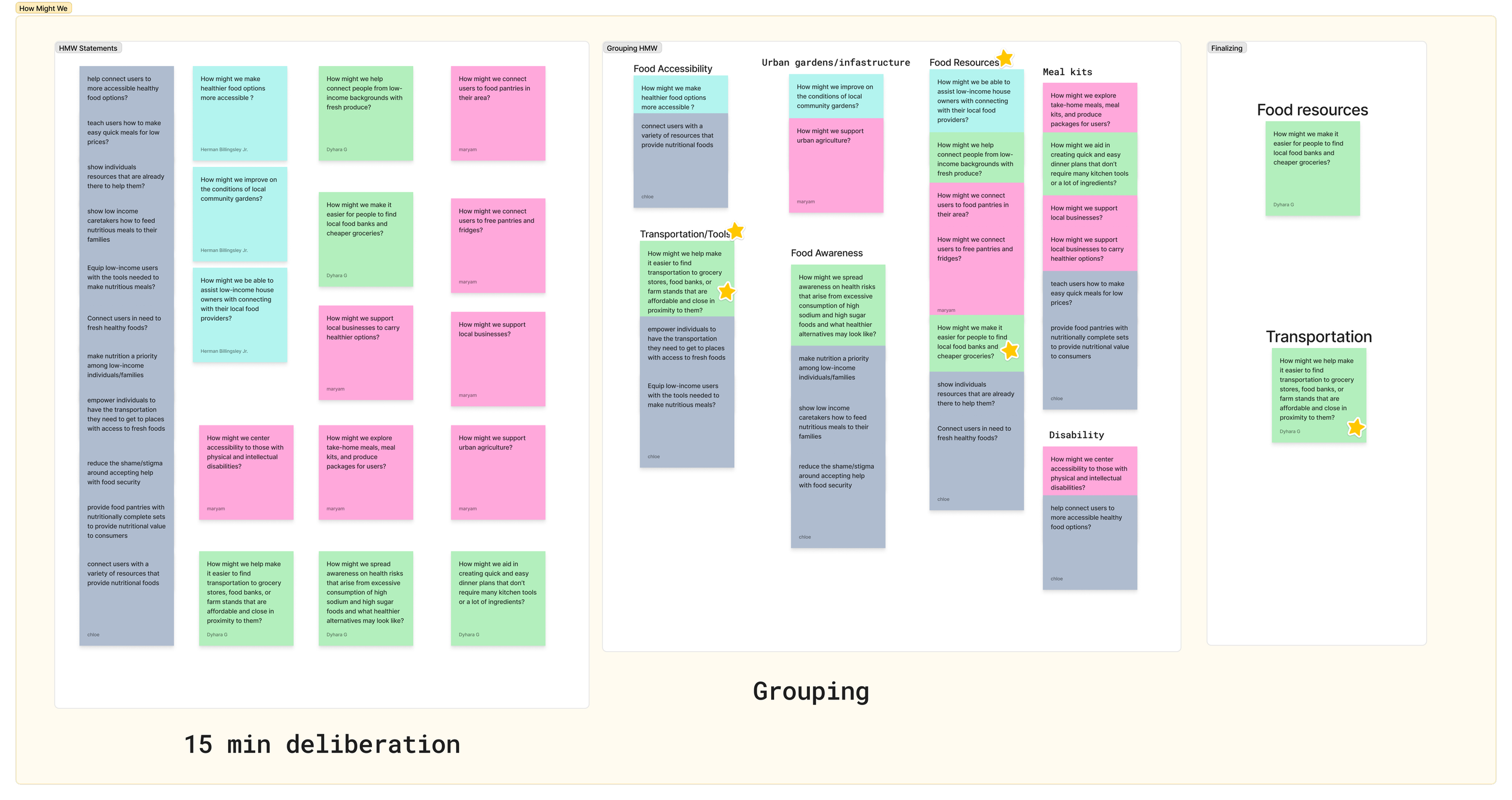 After collecting insights from interviews, we began categorizing and ranking information to create the strongest problem statement: